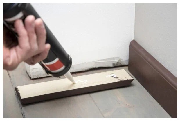 Процесс крепления плинтуса на клей